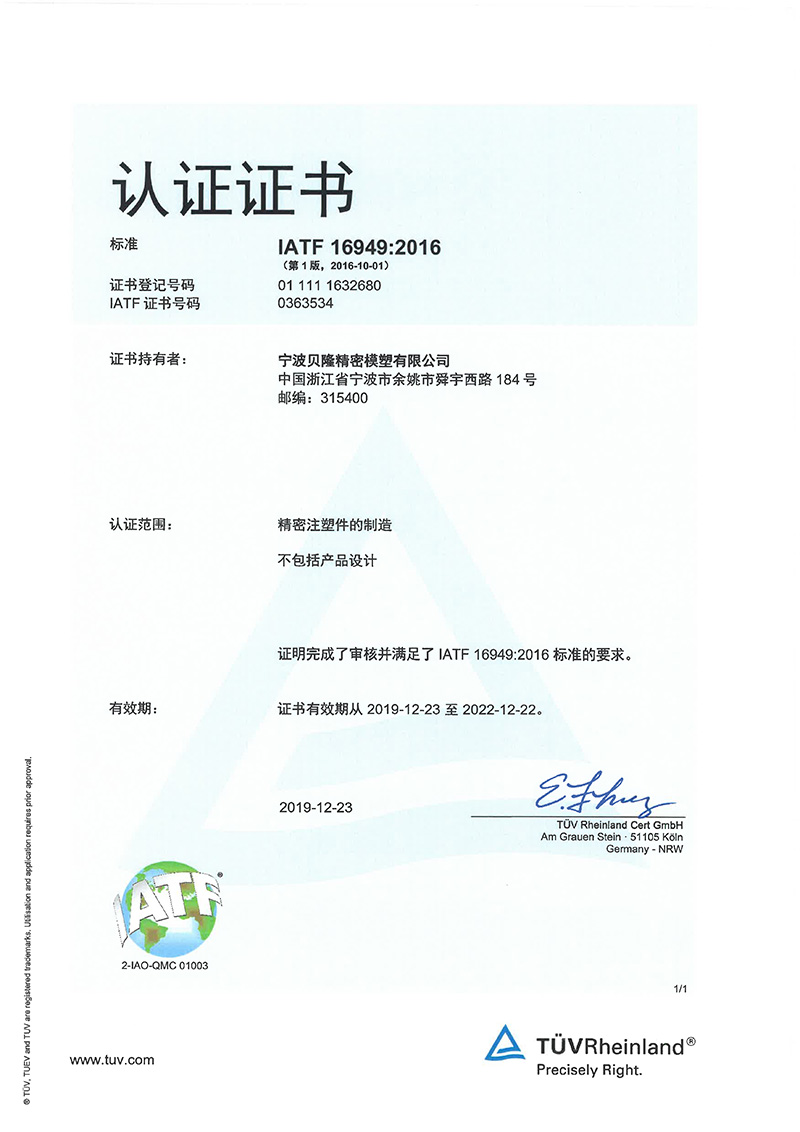 貝隆精密科技股份有限公司(股票代碼:301567)成立于2007年,坐落于中國模具之鄉(xiāng)、浙東名城浙江省余姚市,公司是專業(yè)從事精密注塑、沖壓、埋入成型、模具研發(fā)與制造的高新技術企業(yè)。被評定為國家制造業(yè)單項冠軍、國家級專精特新小巨人企業(yè)、國家知識產(chǎn)權優(yōu)勢企業(yè)。